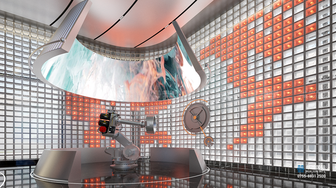 致,始終敢闖敢干、敢為人先,以敏銳的洞察力、科學(xué)的管理力,朝著國際化邁進,予參觀者看到企業(yè)的宏大格局與廣闊視野。 設(shè)計環(huán)幕影院由多臺激光投影系統(tǒng)拼接構(gòu)成,形成環(huán)繞沉浸式空間,參觀者置身其中 ,三維動畫及裸眼3D技術(shù)營造強烈的視覺沖擊效果。