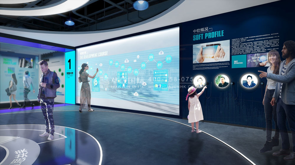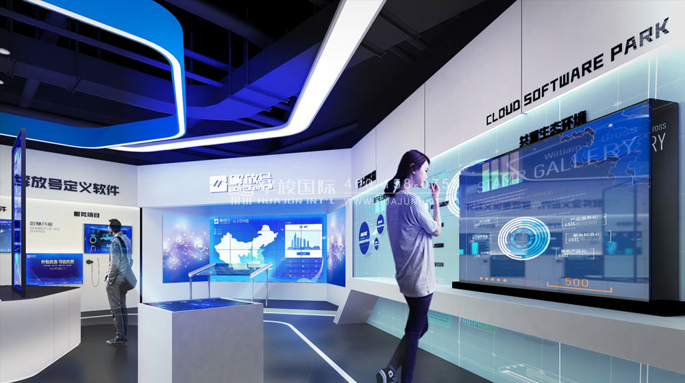 中軟國際企業(yè)展廳設(shè)計是由華竣國際執(zhí)行整體設(shè)計施工的一項企業(yè)展廳案例,從“品牌、產(chǎn)品、文化、科技”四個方向,凸顯企業(yè)在行業(yè)內(nèi)的領(lǐng)先地位,結(jié)合互動多媒體展示形式,打造人文合一的創(chuàng)新企業(yè)展廳案例,讓觀眾切身感受企業(yè)的品牌文化。