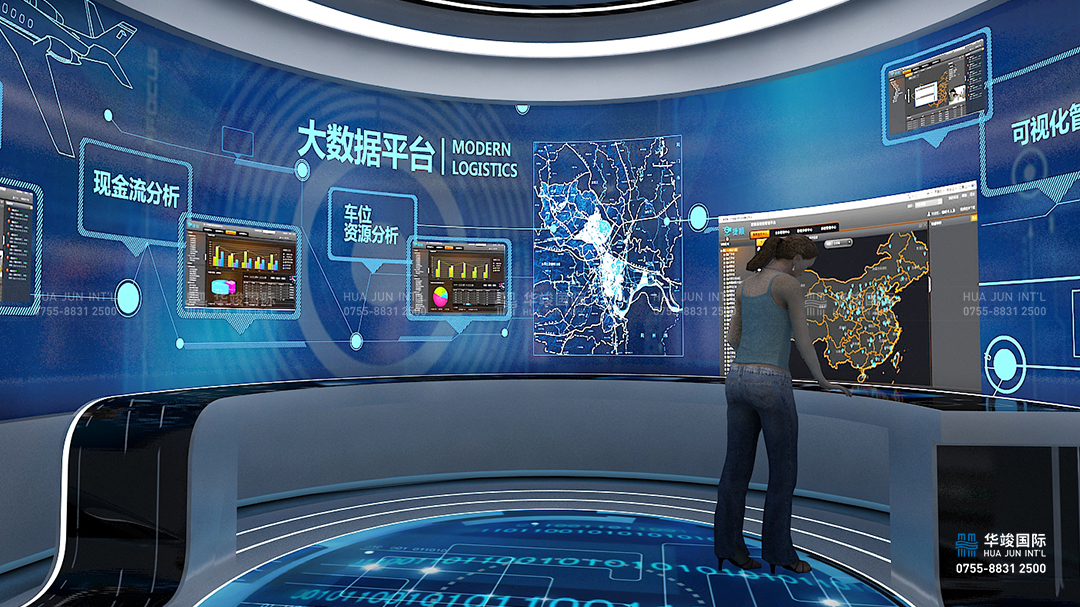 捷順科技·大數據智慧展廳設計項目由華竣數創執行整體設計施工,華竣數創以創新的智慧展廳設計理念,融合互聯網+思維,順應科技化趨勢,結合互動多媒體、數字影片、數字沙盤、虛擬現實等科技展項,打造震撼視覺的高品質科技展廳。