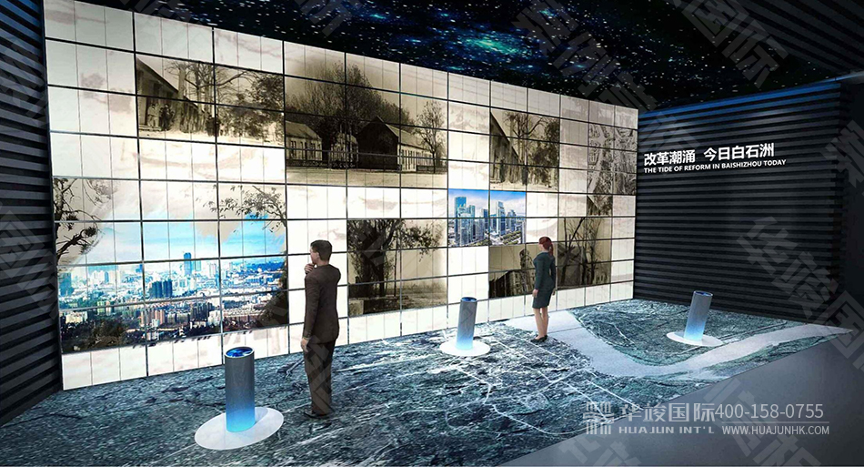 數(shù)字技術(shù): 壁掛沙盤 、 LED查詢觸控屏 、 虛擬講解 、 沉浸式弧幕影院等