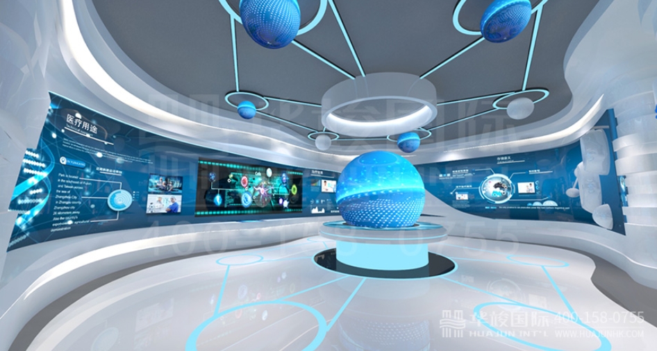 數字技術: 壁掛沙盤 、 LED查詢觸控屏 、 虛擬講解 、 沉浸式弧幕影院等
