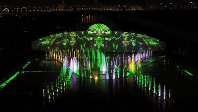 劇院廣場上,大劇院、小劇院和青年劇院的正面會連接成三面環(huán)抱式大型全景屏幕,為觀眾帶來全方位的沉浸式體驗。