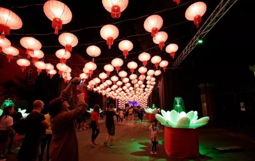 波蘭托倫當(dāng)代藝術(shù)中心在去年舉辦了“荊風(fēng)楚韻,璀璨中華”——紀念中國改革開放四十周年圖片展,今年的燈光節(jié)上也出現(xiàn)了不少中國元素,如紅燈籠、蓮花等。