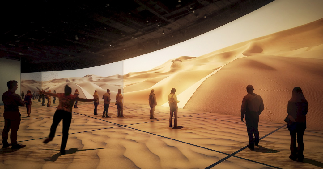 環幕影院指弧度為120-360°的數字影院系統,由影片、投影融合系統、柱面投影屏幕組成,立體感、動感和沉浸感十足,成為公認的大型數字展館的重要體驗推廣方式。